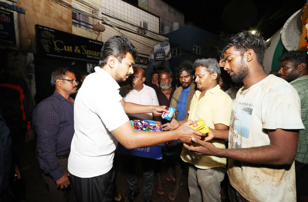 மேலும் சென்னையில் அதி கனமழை பொழியும் நேரங்களில் மழை நீர் தேங்காமல் இருப்பதற்காக மாநகராட்சி சார்பில் மேற்கொள்ளக்கூடிய நடவடிக்கைகளை தீவிர படுத்த வேண்டுமென அதிகாரிகளுக்கு அறிவுறுத்தல்களை வழங்கிய அவர், நள்ளிரவில் பண்ணியாற்றிவரும் மாநகராட்சி ஊழியர்களுக்கு உணவுப்பொருட்களை வழங்கினார்.