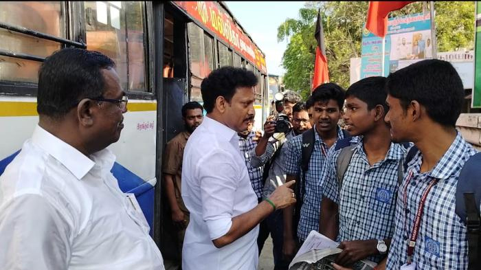 அப்பள்ளி தேர்வு மையமாக செயல்படுவதால் அருகாமையிலுள்ள பள்ளி மாணவர்கள் சிறப்பு பேருந்தில் அழைத்து வரப்பட்டார்கள். அவர்களையும் சந்தித்து வாழ்த்துகள் தெரிவித்தார். “மாணவச் செல்வங்களே மகிழ்ச்சியுடனும் நம்பிக்கையுடனும் தேர்வு எழுதுங்கள்.” என்று அப்போது அவர் அறிவுரை கூறினார்.