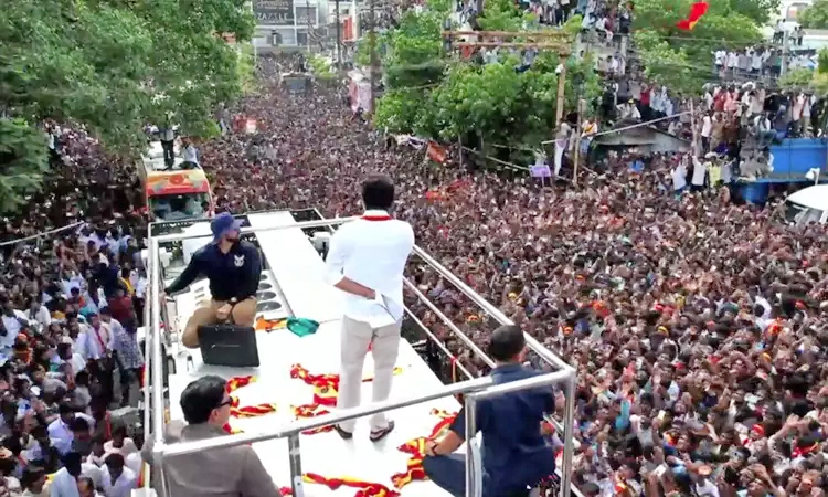 விக்கிரவாண்டி, மதுரை மாநாட்டினை தொடர்ந்து, திருச்சியில் தமிழக வெற்றிக் கழகத் தலைவர் விஜய் இன்று பிரசாரத்தை தொடங்கியுள்ளார்.