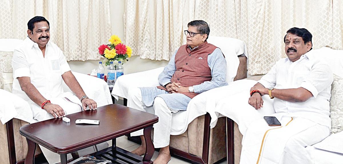 அதிமுக பொதுச்செயலாளர் பழனிசாமியை பாஜக மேலிட தமிழக தேர்தல் பொறுப்பாளர் பைஜெயந்த் பாண்டா நேற்று சந்தித்து ஆலோசனை நடத்தினார். பாஜக மாநில தலைவர் நயினார் நாகேந்திரன் உடனிருந்தார்.