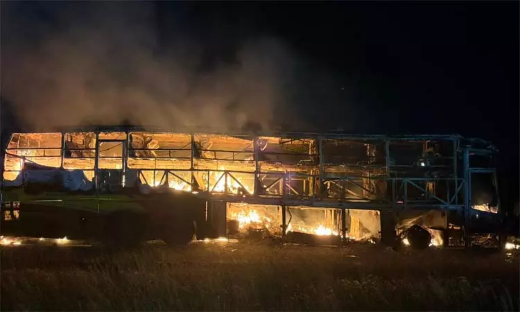 தெலுங்கானா மாநிலம் ஐதராபாத்தில் இருந்து கர்நாடக மாநிலம் பெங்களூருவுக்கு நேற்று இரவு ஆம்னி பஸ் புறப்பட்டது. இந்த பஸ்சில் 42 பேர் பயணித்தனர்.