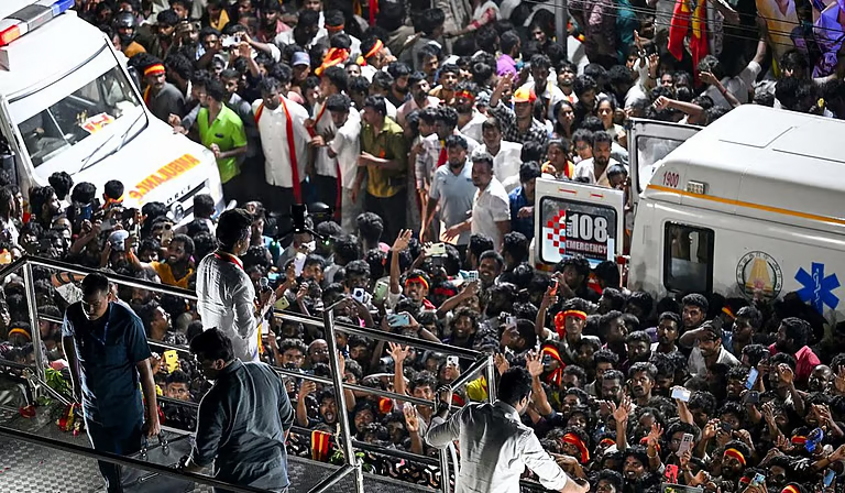 கரூர் வேலு​சாமிபுரத்​தில் தவெக பிரச்​சா​ரக் கூட்ட நெரிசலில் சிக்கி 41 பேர் உயி​ரிழந்​தனர். அப்​போது, அங்கு ஏராள​மான ஆம்​புலன்​ஸ்​கள் வந்​தன.