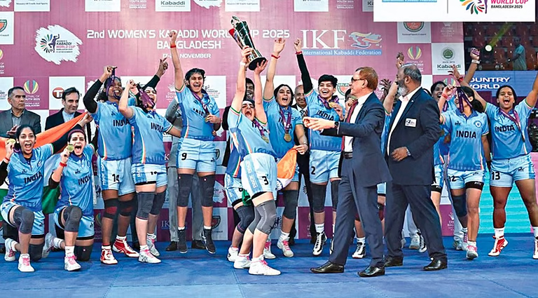 பரபரப்​பாக நடை​பெற்ற இந்த ஆட்​டத்​தில் இந்​திய மகளிர் அணி 35-28 என்ற புள்​ளி​கள் கணக்கில் வெற்றி பெற்று தொடர்ச்​சியாக 2-வது முறை​யாக சாம்​பியன் பட்​டம் வென்​றது. சாம்​பியன் பட்​டம் வென்ற இந்​திய அணிக்கு பிரதமர் மோடி வாழ்த்து தெரிவித்துள்ளார்.