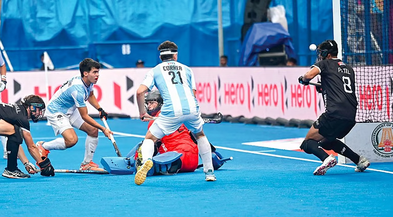 அர்​ஜெண்​டினா அணி சார்​பில் புரூனோ காரியா 2 கோல்​களும் (11 மற்​றும் 40-வது நிமிடங்​கள்), மேட்​டியோ டாரி​கி​யானி ஒரு கோல் அடித்​தனர்.