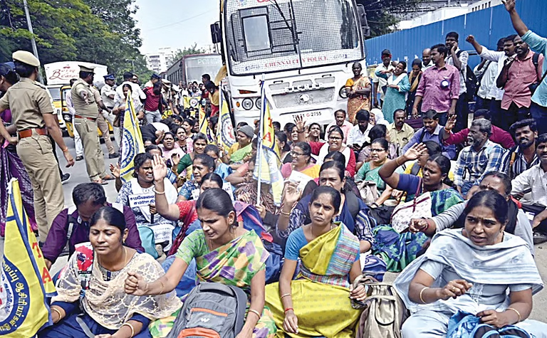 முன்கூட்டியே கைதுசெய்வது, வலுக்கட்டாயமாக அப்புறப்படுத்துவது என எங்கள் போராட்டத்தை ஒடுக்க நினைத்தாலும், கோரிக்கை நிறைவேறும் வரை போராடுவோம். திமுக ஆட்சியில் போராடக்கூட அனுமதி மறுக்கிறார்கள்.