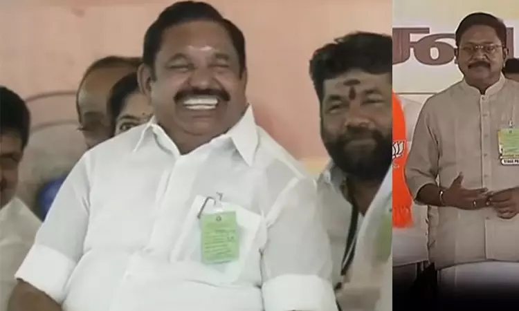 இந்த நிலையில், தேசிய ஜனநாயக பொதுக்கூட்ட மேடையில் டிடிவி தினகரனுடன் எடப்பாடி பழனிசாமி கை குலுக்கினார். மேடைக்கு வந்த எடப்பாடி பழனிசாமியை டிடிவி தினகரன் முகம் மலர வரவேற்றார். தொடர்ந்து ஒரே மேடையில் இருவரும் அமர்ந்துள்ளனர்.