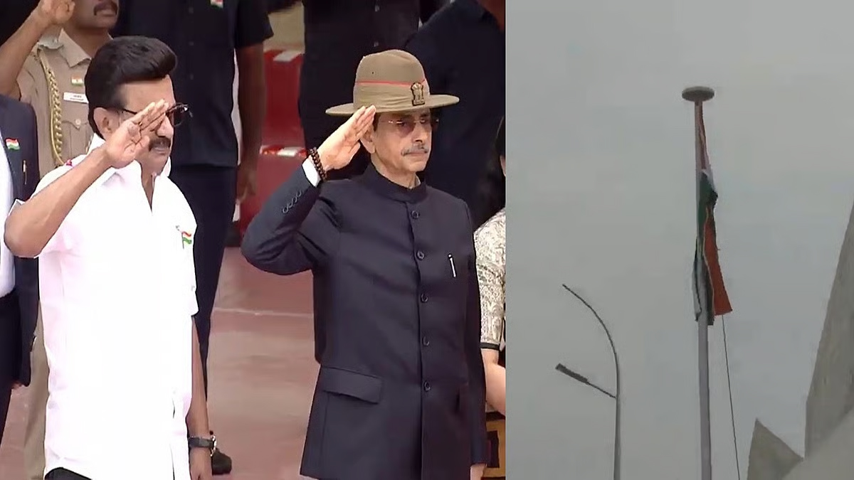 இதில் தேசியக் கொடியை ஆளுநர் ஆர்.என்.ரவி ஏற்றிவைத்தார். அப்போது ஹெலிகாப்டரில் இருந்து மலர் தூவப்பட்டது. தொடர்ந்து தேசிய கீதம் இசைக்கப்பட்டது.
