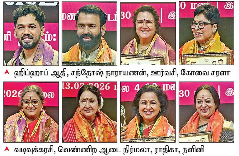 விருது வழங்கும் விழா சென்னை கலைவாணர் அரங்கில் நேற்று மாலை நடைபெற்றது. விருதுகளை துணை முதல்வர் உதயநிதி ஸ்டாலின் வழங்கினார். நடிகர்கள் சூர்யா, கார்த்தி, தனுஷ், விஜய் சேதுபதி, பார்த்திபன், விக்ரம் பிரபு உள்ளிட்டோரும், நடிகைகள் கீர்த்தி சுரேஷ், அபர்ணா பாலமுரளி, சாய்பல்லவி, மஞ்சு வாரியர், ஐஸ்வர்யா ராஜேஷ் ஆகியோர் சிறந்த நடிகர், நடிகைகளுக்கான விருதுகளைப் பெற்றனர்.