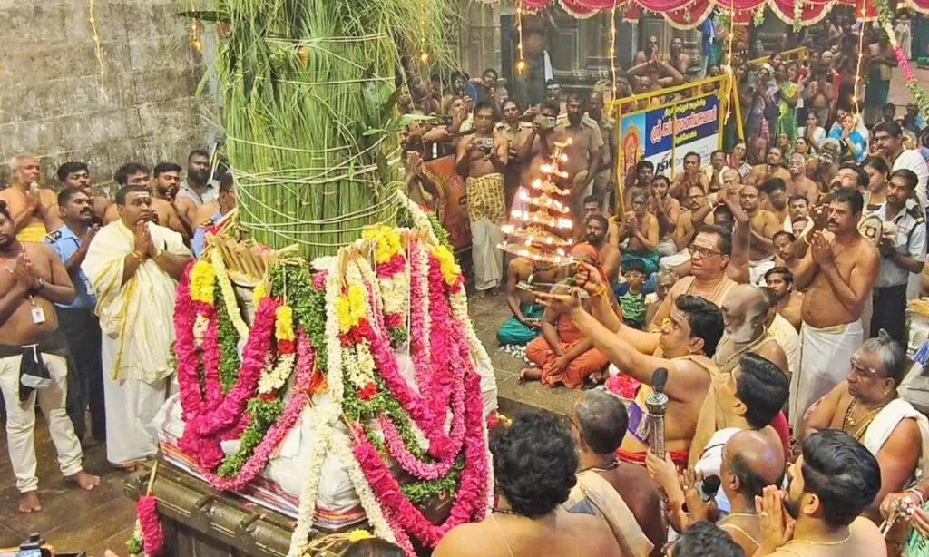 தொடர்ந்து கொடி மரத்துக்கு பல்வேறு அபிஷேகப் பொருட்களால் அபிஷேகம், அலங்காரம் ஆகி தீபாராதனை நடைபெற்றது. காலை 10 மணிக்கு உச்சிகால அபிஷேகம் நடைபெற்றது. மாலை 4 மணிக்கு சாயரட்சை தீபாராதனை, இரவு 7 மணிக்கு இராக்கால அபிஷேகம் நடக்கிறது.