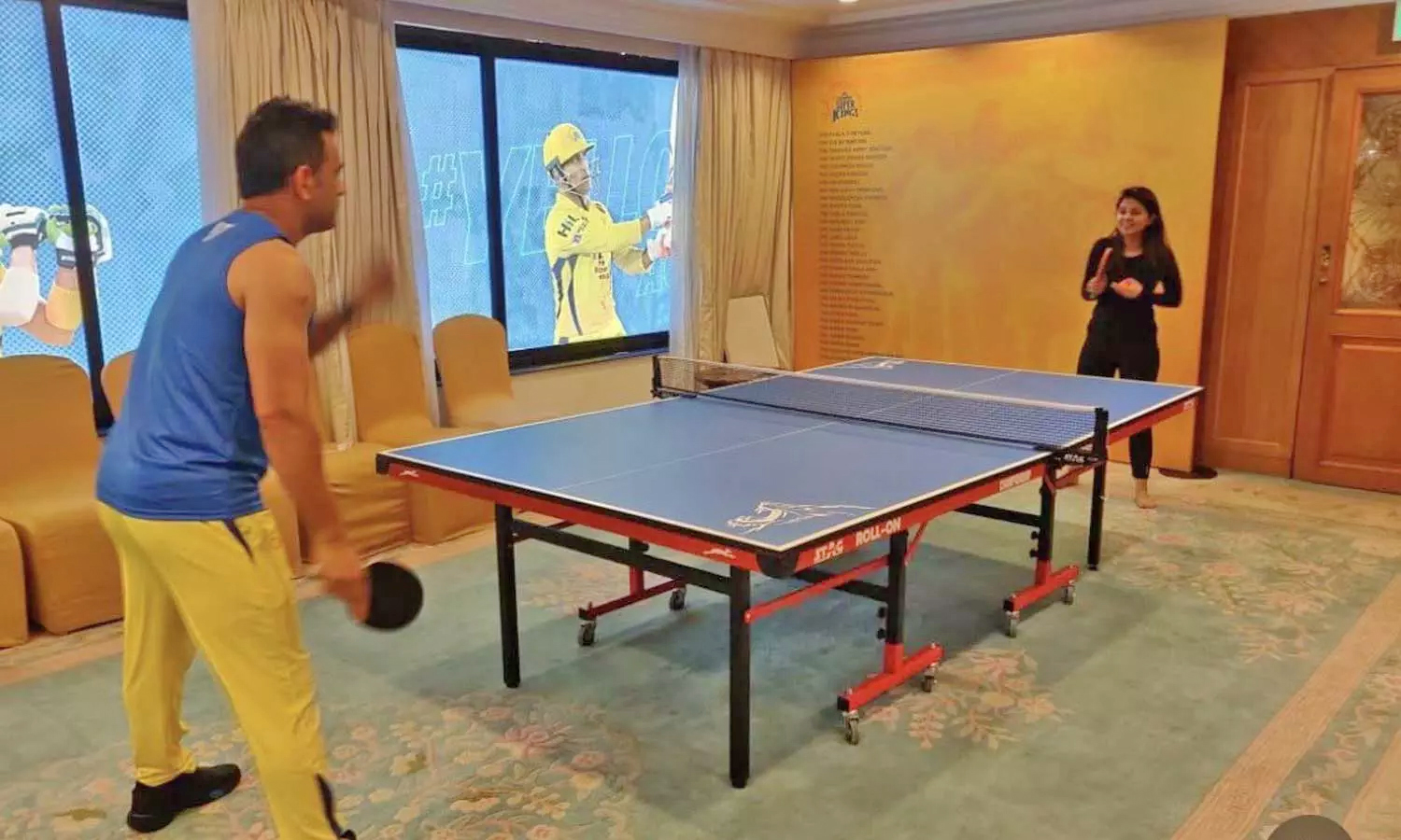 இந்நிலையில், தோனியுடன் டேபிள் டென்னிஸ் விளையாடும் புகைப்படத்தை அவரது மனைவி சாக்ஷி சிங் பகிர்ந்துள்ளார்.