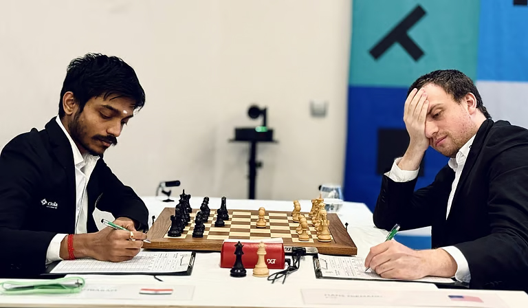 அதேவேளையில் உலக சாம்பியனான இந்தியாவின் டி.குகேஷ், ஜெர்மனியின் வின்செட் கீமருக்கு எதிரான ஆட்டத்தை 47-வது நகர்த்தலின் போது டிரா செய்தார். 8 சுற்றுகளின் முடிவில் அரவிந்த் சிதம்பரம் 4 புள்ளிகளுடன் 6-வது இடத்தில் உள்ளார்.
