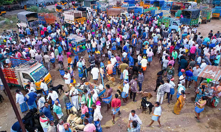 விழுப்புரம் மாவட்டம் செஞ்சியில் வாரந்தோறும் வெள்ளிக்கிழமை வாரச்சந்தை நடை பெற்று வரும் நிலையில் சந்தையில் ஆடுகள் மற்றும் மாடுகளின் விற்பனை அதிக
