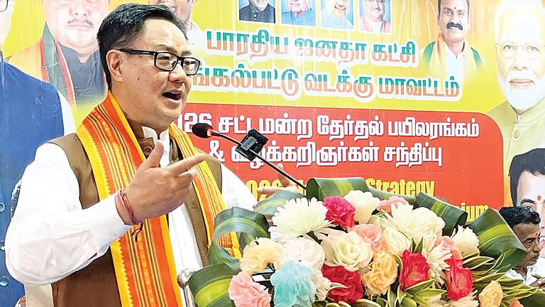 செங்கல்பட்டு மாவட்டம், கூடுவாஞ்சேரியில் பாஜக சார்பில் தமிழக சட்டப்பேரவைத் தேர்தல் குறித்த பயிலரங்கம் மற்றும் வழக்கறிஞர்கள் சந்திப்பு நேற்று நடைபெற்றது. மத்திய நாடாளுமன்ற விவகாரத்துறை அமைச்சர் கிரண் ரிஜிஜூ, தேர்தல் பயிலரங்கத்தில் சிறப்புரையாற்றினார்.