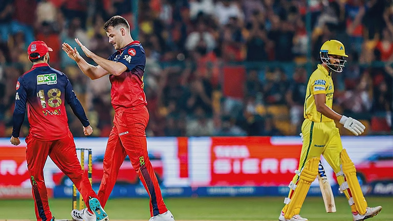 டாஸ் வென்ற சிஎஸ்கே அணி முதலில் பந்துவீச்சைத் தேர்வு செய்தது. தொடக்க வீரராக களம் இறங்கிய விராட் கோலி (28) ஏமாற்றம் அளித்தாலும், தேவ்தத் படிக்கல் (50) மற்றும் பில் சால்ட் (46) ஜோடி அதிரடியாக ஆடி ஸ்கோரை உயர்த்தியது.
