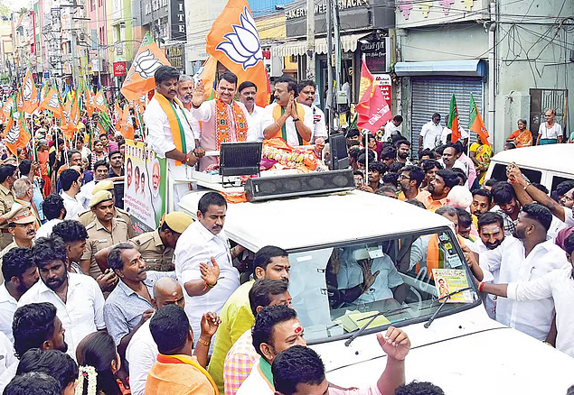 மதுரை தெற்கு தொகுதியில் பாஜக வேட்பாளர் ராம.சீனிவாசன் வேட்புமனுத் தாக்கலில் பங்கேற்பதற்காகமகாராஷ்டிரா முதல்வர் தேவேந்திர பட்னாவிஸ் நேற்று மதுரை வந்தார்.
