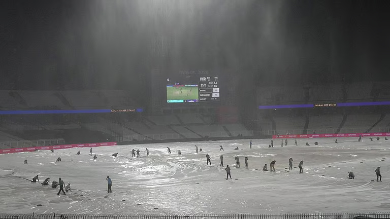 கொல்கத்தா நைட் ரைடர்ஸ் மற்றும் பஞ்சாப் கிங்ஸ் அணிகளுக்கு இடையிலான ஐபிஎல் 2026 லீக் ஆட்டம், விடாது பெய்த கனமழை காரணமாக ரத்து செய்யப்பட்டது.