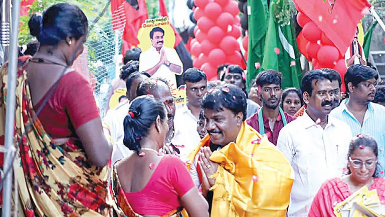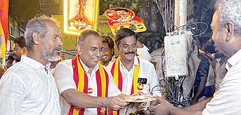 தவெக வேட்பாளரான பொறியாளர் வி.கே.ராம்குமார், வாகனத்தில் விஜய் பாடல்களை அலற விட்டபடி, வாக்காளர்களைச் சந்தித்து, ‘‘அண்ணே… இந்தமுறை கொஞ்சம் மாற்றி யோசியுங்கள். எங்களுக்கு ஒரு வாய்ப்பு தாருங்கள்’’ என்று பிரச்சாரம் செய்து வருகிறார்.