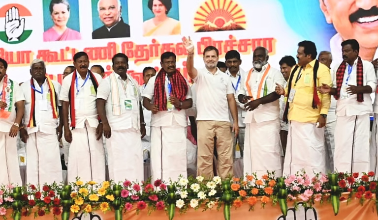 திருவள்ளூர் மாவட்டம், பொன்னேரியில் இண்டியா கூட்டணி வேட்பாளர்களை ஆதரித்து ராகுல் காந்தி இன்று பிரச்சாரம் மேற்கொண்டார்.