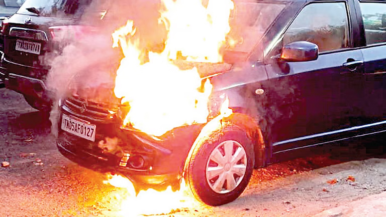 கண்​ணிமைக்​கும் நேரத்​தில் தீ காரின் அனைத்​துப் பகு​தி​களுக்​கும் பரவிய​தால், அந்த இடமே கரும்​புகை மண்​டல​மாகக் காட்​சி​யளித்​தது.